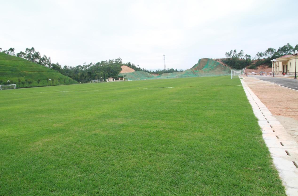 海南琼中女足训练基地是一个11人制标准足球场,面积:9360m2, 我司完成250mm 厚种植层土壤改良、草坪种植及养护三个月成坪,草坪质量达到《天然材料体育场地使用要求及检验方法第1部分:足球场地天然草面层》(GBT19995.1-2005)所要求的一级标准。